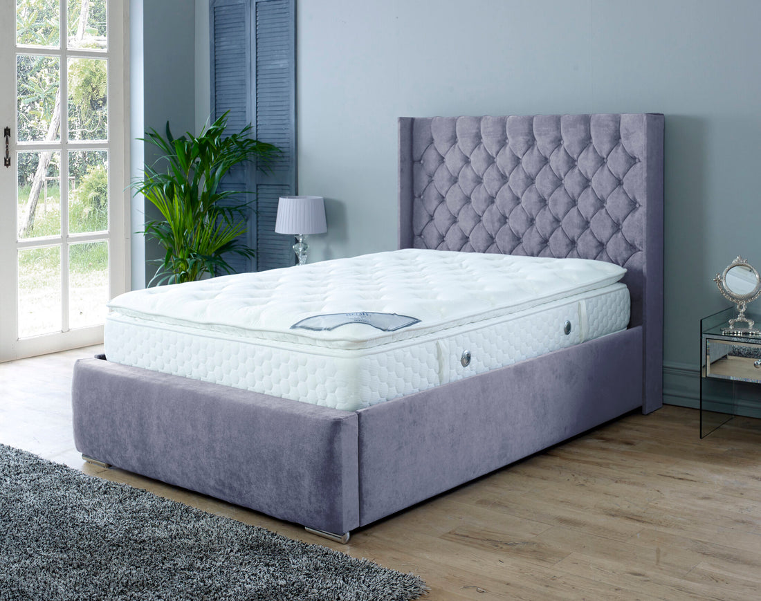 Nylasor Velvet Steel Buttoned Headboard & Footboard 4ft6 Ottoman Double Bed