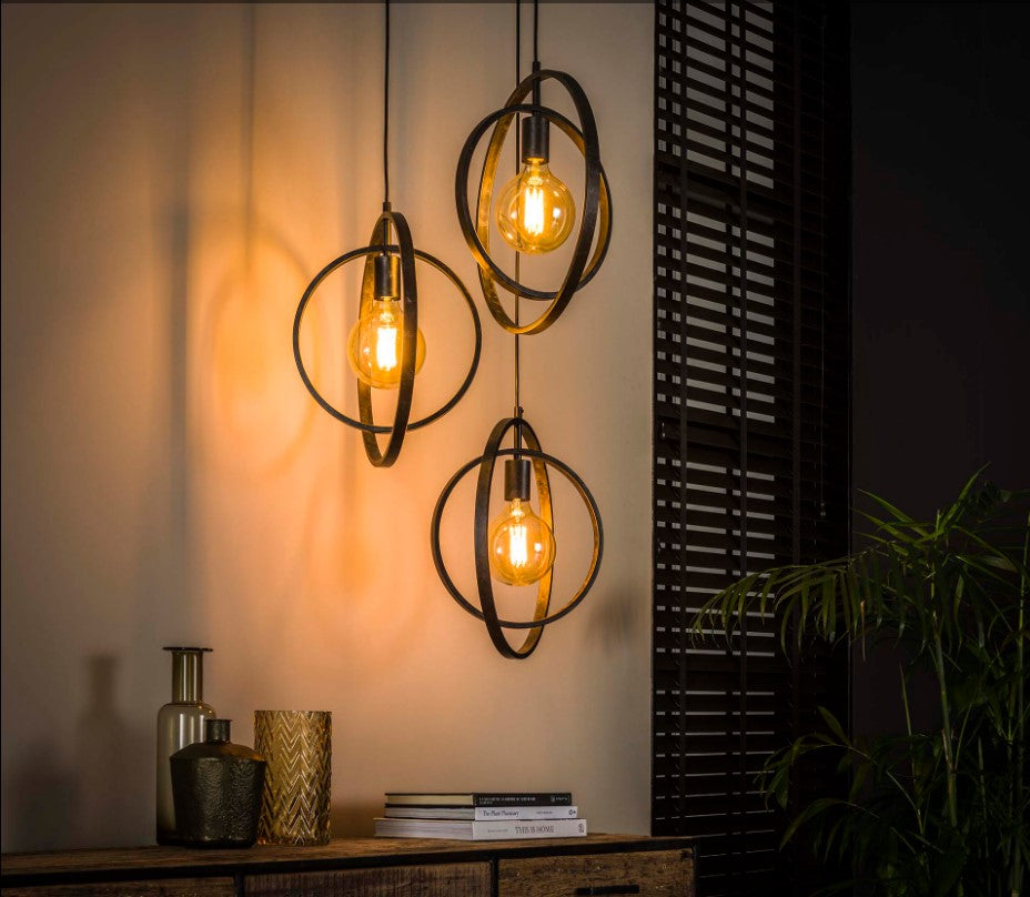 ZI Hanging lamp 3x Ø30 curved wooden bars
