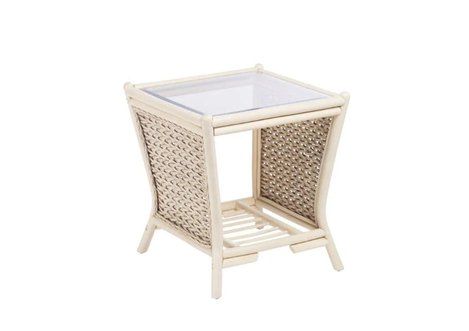 De Dirdam Grey Lamp Table - Handcrafted Cane & Glass