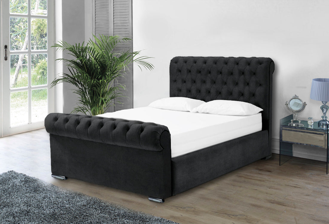 Nylasor Velvet Black Buttoned Headboard 5ft Ottoman Bed