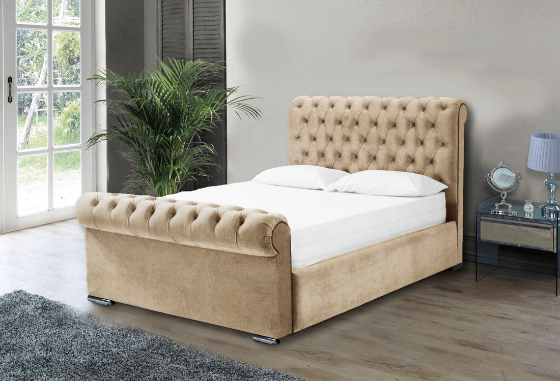 Nylasor Velvet Beige Buttoned Headboard 5ft Bed