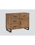 Maximize your storage space and add a touch of rustic charm to your dining room or living area with the Pembroke 1 + 4 Sideboard in Rustic Pine/Black. This sideboard features a spacious cupboard with a single door, complemented by four drawers, offering ample storage for dishes, linens, or other essentials. The warm pine finish and contrasting black metal legs create a timeless look that complements a variety of décor styles.