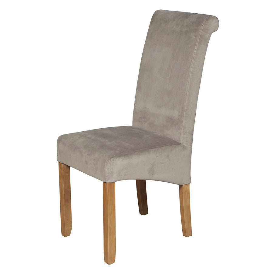 Elevate your dining room with the gorgeous Sophie Dining Chair! These stunning dining chairs have been upholstered in a soft fabric or leather, with an elegant scroll design at the top with a slightly curved back for extra comfort. The seat has been padded for extra comfort and softness, with light oak legs that provide you with stability and helps the chair feel stable throughout use. This chair has been upholstered in a grey velvet fabric, creating a luxurious and sumptuous feel as well as providing you with a neutral colour that will blend with almost any colour scheme or décor theme and the Sophie Dining Chair is available in six different colours and finishes.