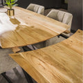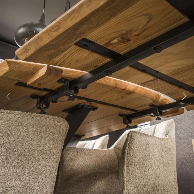 The Artus dining table combines natural warmth with modern industrial style. Crafted from solid acacia wood, the tapered tabletop is finished with a matt, transparent lacquer that highlights the wood’s rich grain. Designed for flexibility, the table extends effortlessly from 175 cm to 275 cm, making it ideal for everyday dining and larger gatherings.