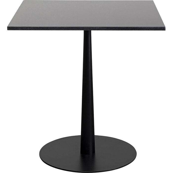 This aesthetically pleasing black dining table (70x70 cm) stands out with its elegant black granite top and clean-lined, modern design. Ideal for smallish rooms, kitchens or dining areas, it combines durability with timeless elegance. The black bistro-style dining table is perfect for style-conscious furnishing concepts, especially where space is at a premium.