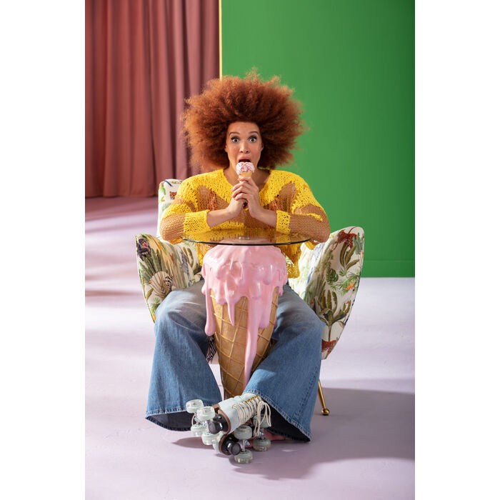 This is what the trend experts are talking about: Weirdcore. The name stands for the shrill and crazy interior design trend that has triggered so much hype on Pinterest with in-your-face home accessories and bright colours. We love eccentric furnishing Ideas, because they bring fun and joie de vivre into your four walls. And all this without a lot of investment or moving stuff around. Our glass table Icecream is the best example of this: an absolute eye-catcher with its trendy pink colouring and a melting ice cream. Icecream looks simply stunning as a living room table and in terms of furnishing there s nothing you can do wrong. Because the table is so unusual, it really is an attention-getter that goes well with any sofa and armchair, or even with the bed if you want to bring soft ice cream colours into the bedroom.