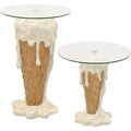 The Ice Cream Vanilla bistro table is a charming and compact piece, perfect for small dining areas, cafés, or stylish corners. Featuring a sculptural polyresin frame paired with a clear toughened safety glass tabletop, it combines playful design with everyday practicality.