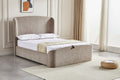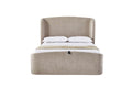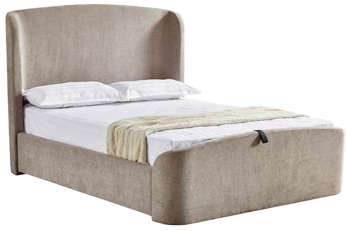 Blaire Ottoman Bed in Beige is a sleek, space-saving bed designed for modern bedrooms. Upholstered in a soft flat-weave fabric, it features a clean contemporary look with a gas-lift ottoman base offering generous under-bed storage. A supportive slatted base ensures comfort and durability.