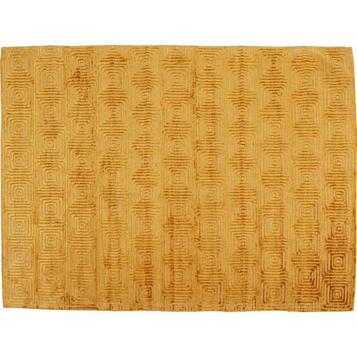 - Rectangular carpet in a warm yellow made of viscose and cotton with a graphic tone-in-tone pattern