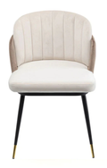 You can sit comfortably on this stylish velvet chair, even if the dinner party or meeting lasts a little longer. The shell shape and quilting make this designer chair a sensational centrepiece in the living room, dining room or study. The delicate natural tones of the cover in combination with the elegant, slightly flared legs in black and gold lacquered steel have a subtly glamorous.