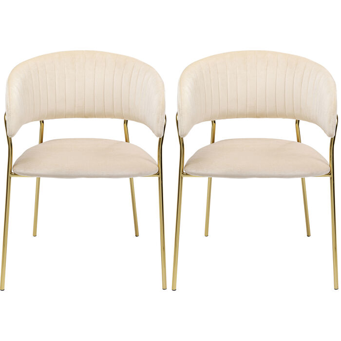 Chair with Armrest Belle Velvet Cream (2/Set)