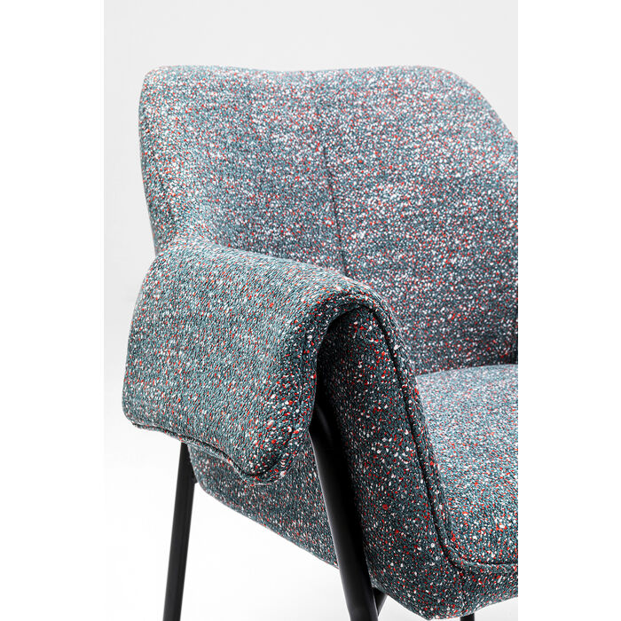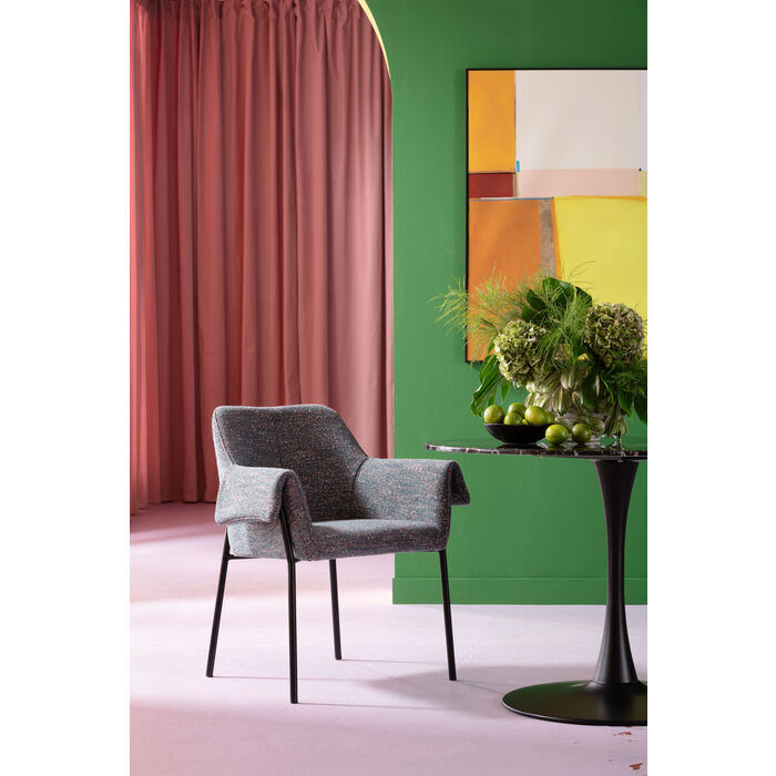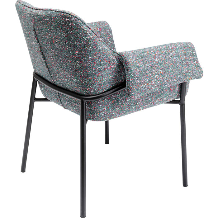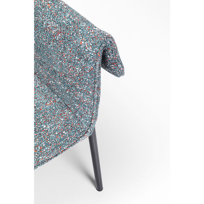 At first glance the comfortable armchair Bess looks timeless and modern, but its cover fabric with small colourful touches gives it discreet sophistication. The look is reminiscent of the play of colours in tweed fabrics and will add vibrancy to any room. The black legs are made of powder-coated steel for a stable stand. Enjoy the comfort of this upholstered chair as a dining room chair, as a place of relaxation in the bedroom or for your desk in the office at home.