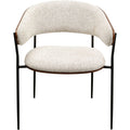 Elegance and timeless modernity - these are the features that characterise the design of this premium-quality upholstered chair. The tweed-look cover meets the warm, brown walnut wood of the backrest and the two combine to create a sophisticated finish. The curved backrest and the foam padding ensure pleasant seating comfort. The frame and legs of the chair are made of steel and powder-coated in black.