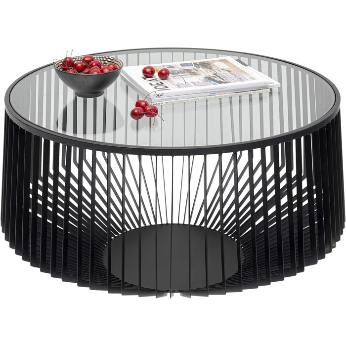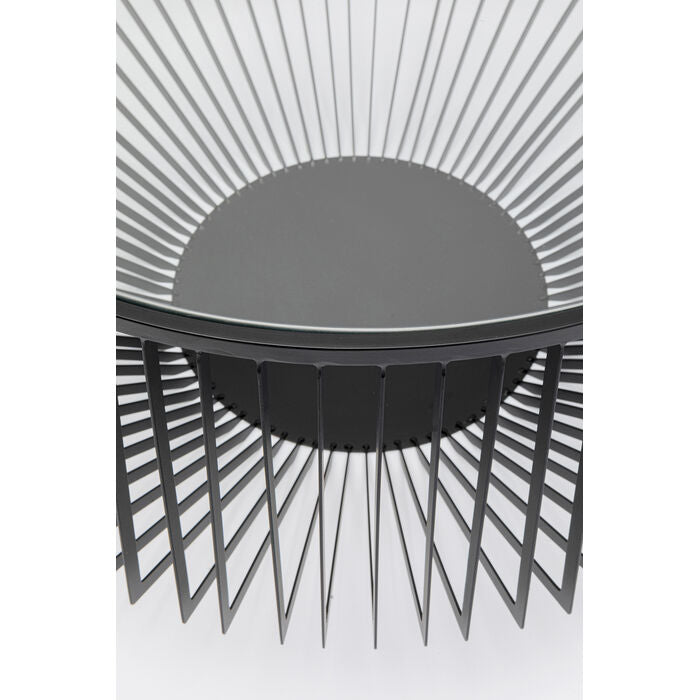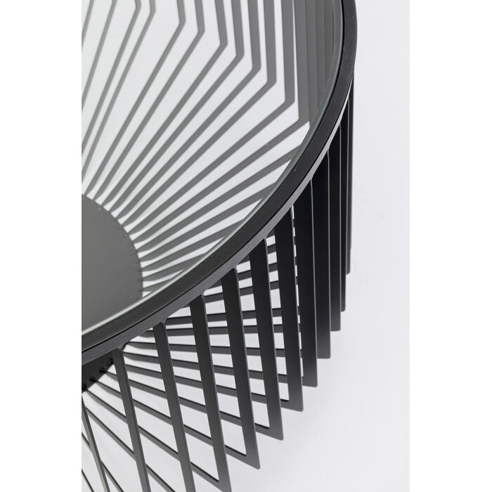 With its graphic base, this black coffee table represents the timeless contemporary interior style. Its distinctive design adds character to any living room and can be easily combined with every armchair and sofa. The combination of the black metal frame with the transparent glass top gives the round living room table an airy lightness. This item of designer furniture from KARE is a statement piece that is aesthetically pleasing and at the same time perfectly fulfils all the functions of a side table.