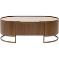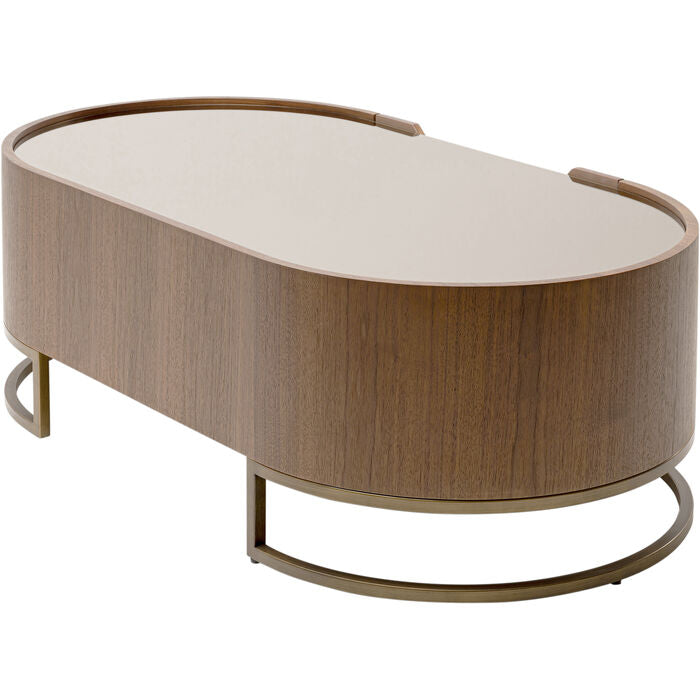 The furniture in the Giorgio collection skilfully combines sophisticated design and homely elegance. Expressive wood meets elegant glass accents, lending depth and a touch of glamour to the overall look. Rounded lines and delicate metal feet create a modern lightness that still exudes down-to-earthness. This coffee table becomes a stylish focal point in the living room – ideal for storing magazines, snacks, or stylish decorative objects. The smooth dark glass surface can be cleaned in no time at all. Inside, the collection scores with plenty of space for your favorite items and everyday essentials – outside with a look that leaves a lasting impression. Ideal for stylish living concepts that value character, comfort, and quality.