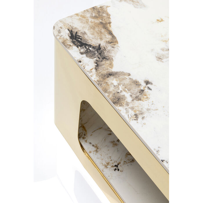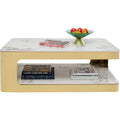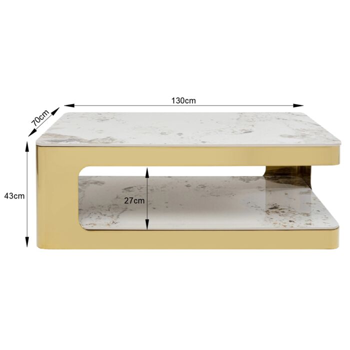 Lift your living room to the next design level with our elegant, modern and glamorous coffee table in gold with light ceramic table tops. This gorgeous piece of furniture will add luxury and sophistication to your rooms. With a spacious rectangular shape, it not only offers stunning aesthetics but also practical surface areas on two levels. Perfect for displaying drinks, books or decorations in style. Add glamour and style to your home with this remarkable coffee table.