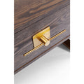 - The metal frame in graphic lines and elegant brass look lets the wooden body float properly