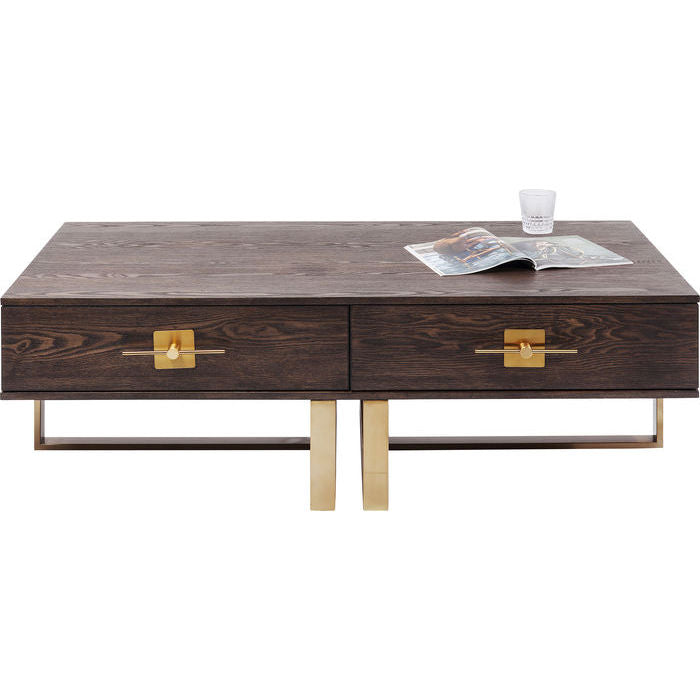 Light and floating, this coffee table presents itself with dark ash veneer which certainly attracts a lot of attention due to its individual design. With its metal frame and the noble brass look fittings it brings a lot of class into the living room. Other furniture models from the Osaka series are available.