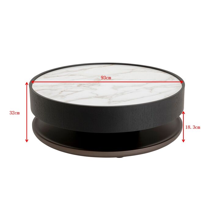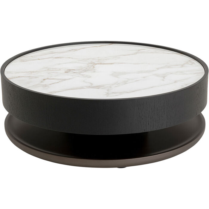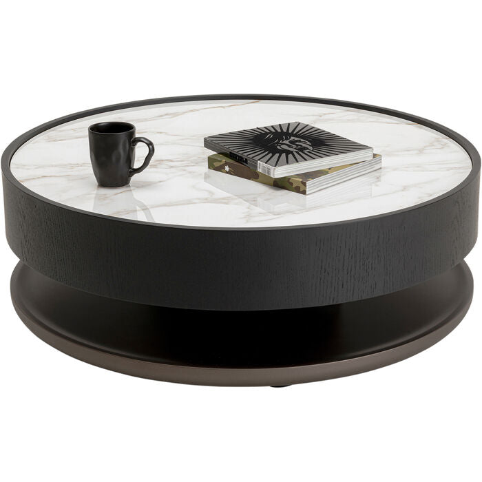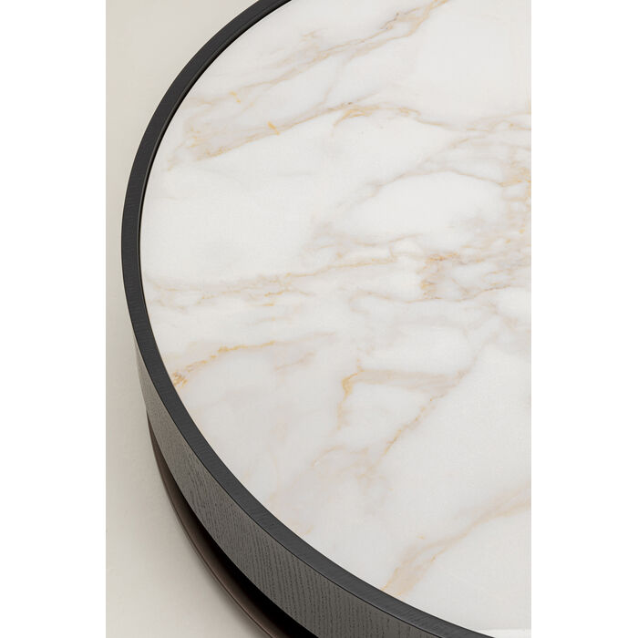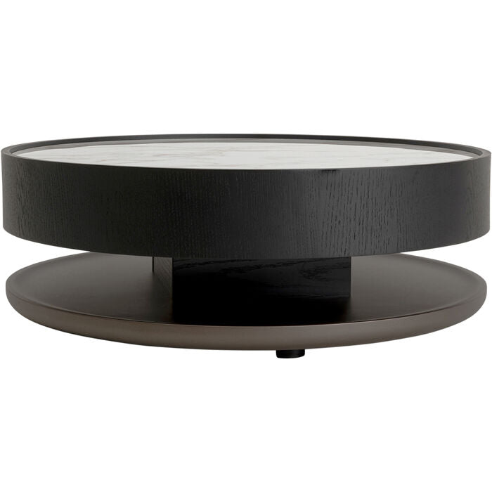 This round coffee table in black and cream and white with its ceramic top will create a modern, stylish ambience in the room. The combination of colours looks elegant and timeless, while the round shape adds soft, harmonious highlights. The ceramic top gives the table a distinctive, easy-care surface that is both robust and aesthetically pleasing. This combination fits perfectly into minimalist and Scandinavian furnishing styles while creating an elegant, balanced overall look.