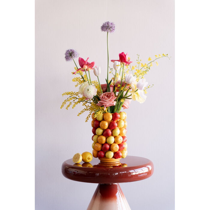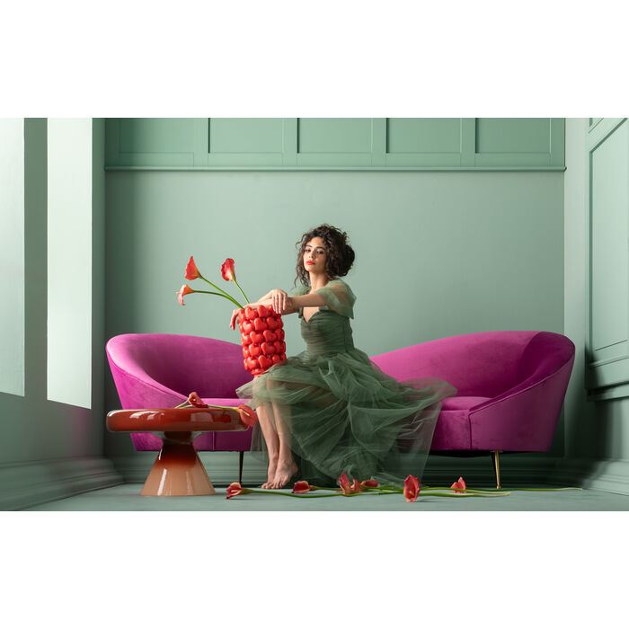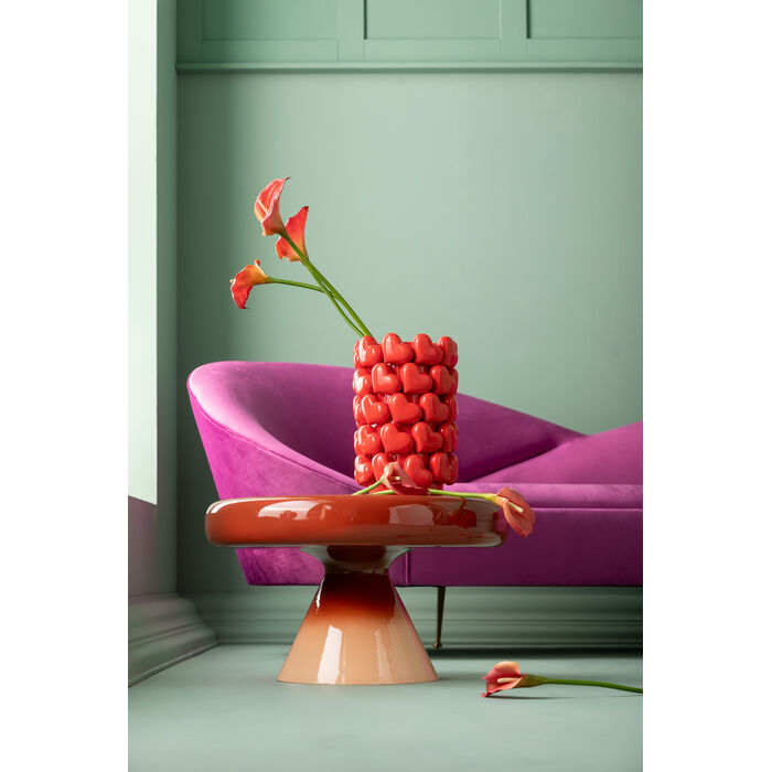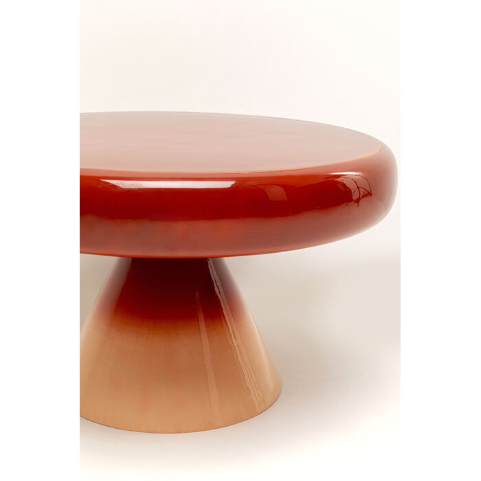 With its warm red and orange color scheme, this coffee table brings vibrant energy into the room. The gently curved table top and elegant conical base create an appealing, organic silhouette that perfectly complements modern or Scandinavian interiors. In combination with neutral tones or minimalist furniture, it becomes a central eye-catcher that brings color and freshness to the living room. Ideal for adding stylish accents and enriching the room with a touch of warmth.