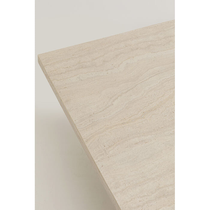 The furniture in our Travertino series combines minimalist design with the natural charm of an elegant stone finish. The open-pored surface impresses with a fine, lively structure that is reminiscent of real travertine, not only visually but also to the touch, and adds depth to the interior. Every angle reveals new nuances and unique grains in delicate beige tones – calm, warm, and wonderfully harmonious. Thanks to the special coating, the surface remains resistant to everyday wear and tear and is easy to clean. Ideal for anyone who loves natural materials but doesn t want to compromise on ease of care and durability.