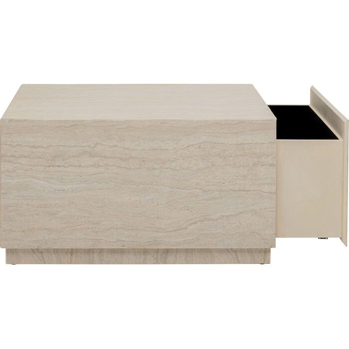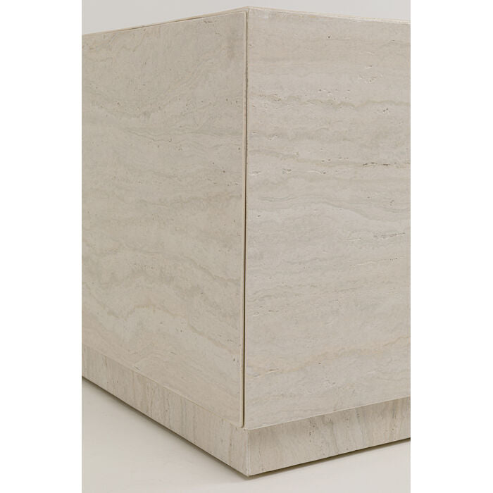 The furniture in our Travertino series combines minimalist design with the natural appeal of an elegant stone finish. The open-pored surface impresses with a fine, lively structure that is reminiscent of real travertine, not only visually but also to the touch, and adds depth to the interior. Every angle reveals new nuances and unique grains in delicate beige tones – calm, warm, and wonderfully harmonious. Thanks to the special coating, the surface remains resistant to everyday wear and tear and is easy to clean. With a practical soft-close function and well-designed storage space, the furniture brings elegant functionality to any room.