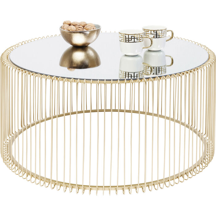 Coffee tables are just like handbags - they add the final touch to your look. This side table impresses not only with its shiny wire frame in a warm brass tone. The mirrored top is a special feature that accentuates your decorative arrangements particularly well. Many similar models available.