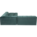 - Corner sofa in dark green with ottoman on the right, with a hard-wearing cover in a flattering velvet look