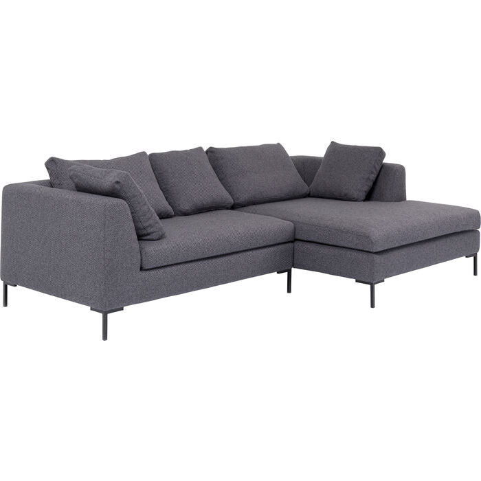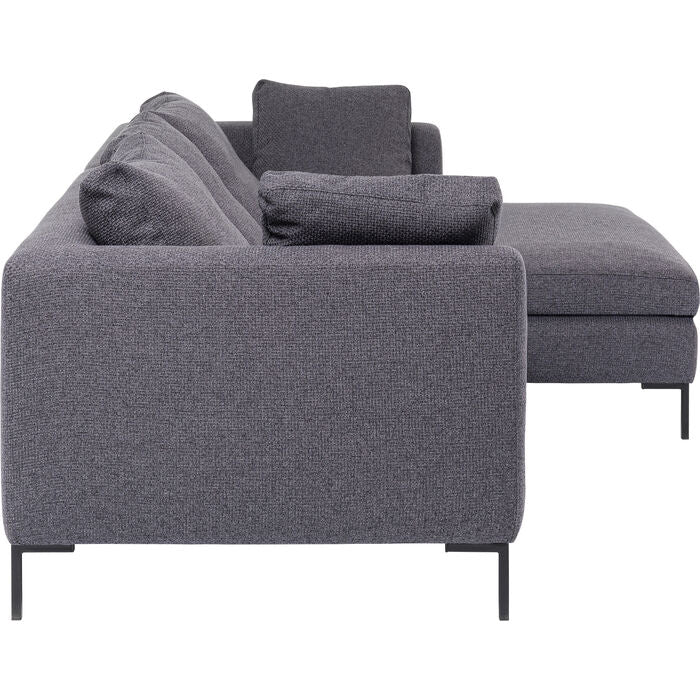 - Comfort plus: the corner couch in dark grey offers an extra-wide ottoman on the right for relaxing