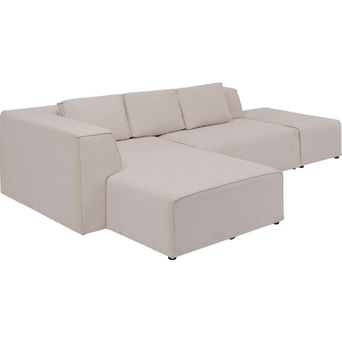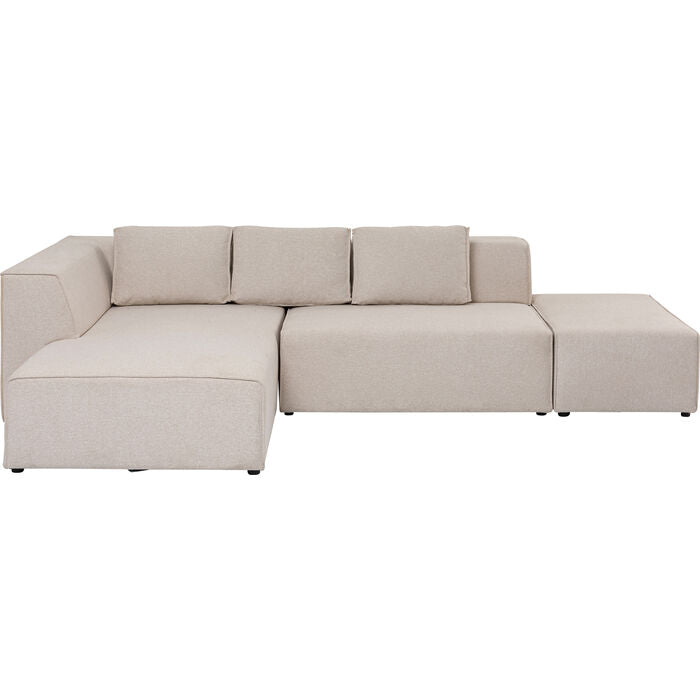 - Three-metre wide corner sofa with ottoman on the left in cream with comfortable upholstery in a classic modern style