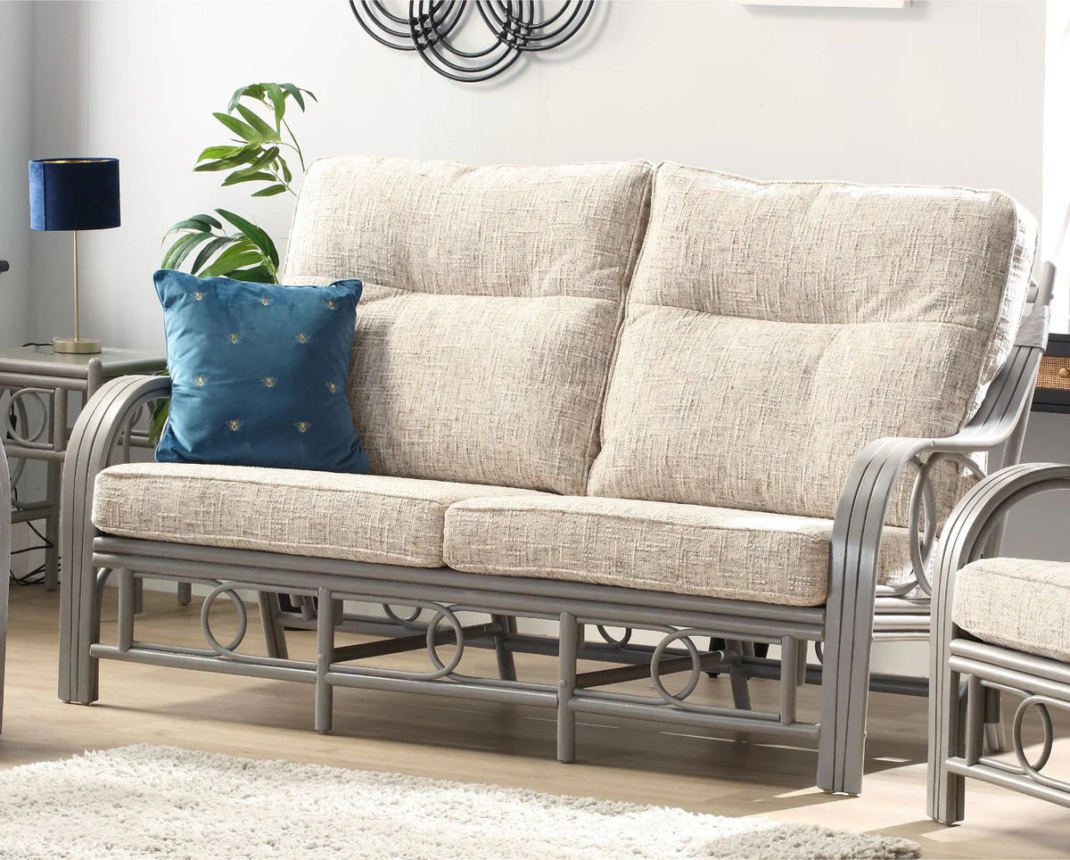 De Dirdam Grey Wash Cane 3 Seater Sofa