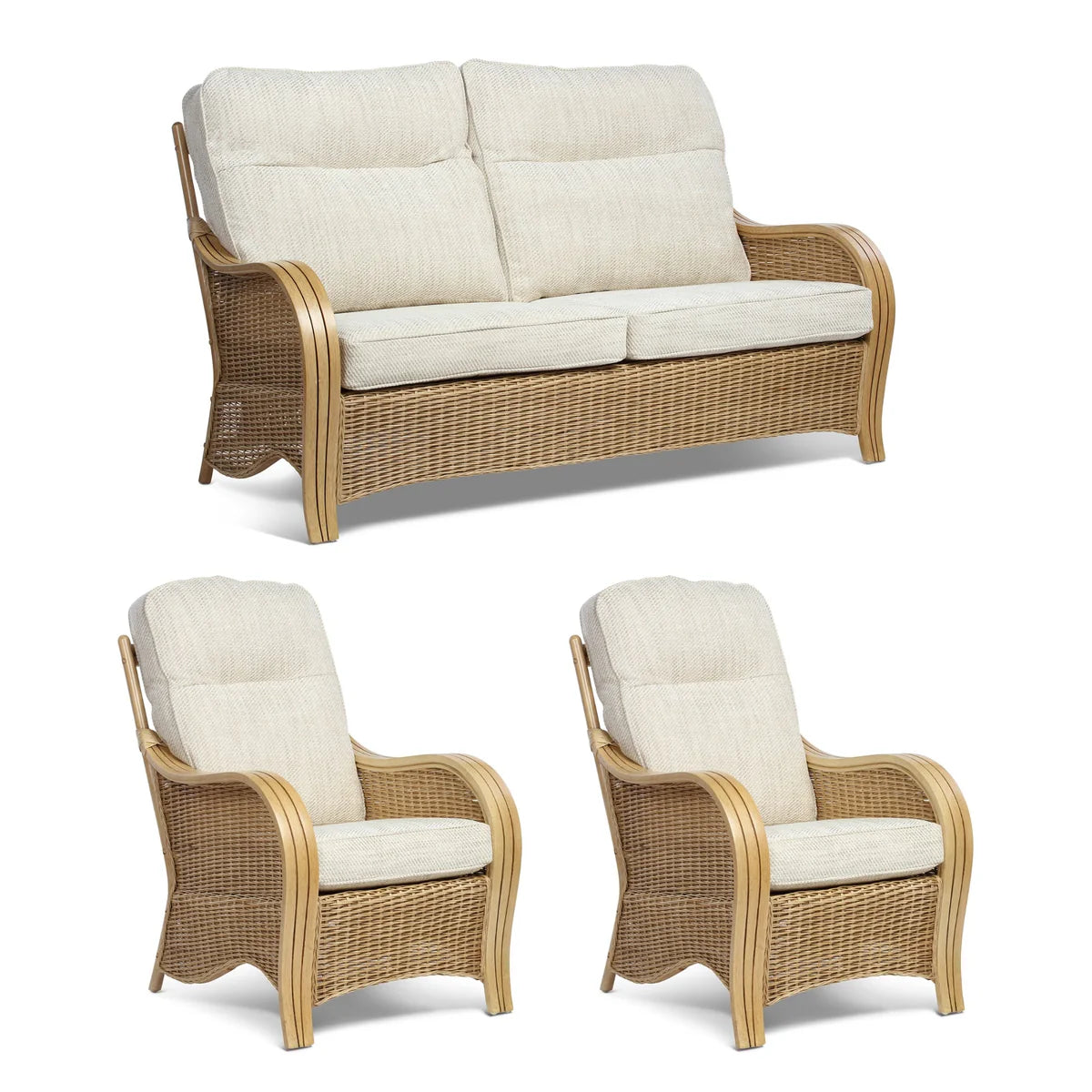 Experience the perfect fusion of classic design and modern comfort with our De Nirut Light Oak 3-Seater Suite – an essential choice for anyone seeking conservatory furniture that enhances both indoor and outdoor living spaces. Designed for the discerning UK homeowner, this suite honours tradition and quality with hand-crafted sustainable rattan and a sumptuous light oak cane finish.