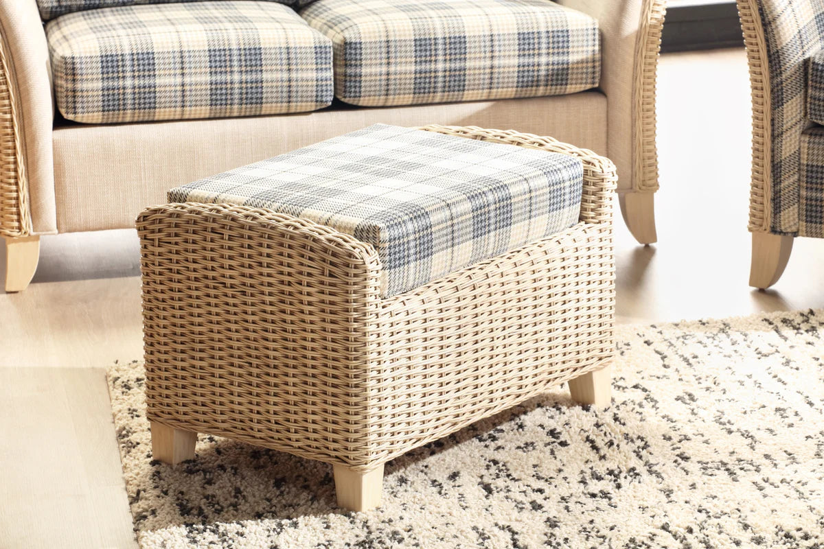 Integrate the ottoman into various settings such as a cozy reading nook, a stylish entryway, or alongside your favorite Cane Footstools to create a cohesive look. Its versatile design makes it suitable for both indoor and outdoor use, providing flexibility wherever you need it.