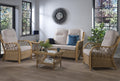 The De Vila Light Oak 2-Seater Sofa and 2 Armchairs Suite is a stylish addition to any household. Different from the traditional indoor cane and rattan furniture, the Viola Light Oak 2-Seater Sofa Suite is available in a wide selection of fabrics and fits in with the rest of the Viola Light Oak range impeccably.