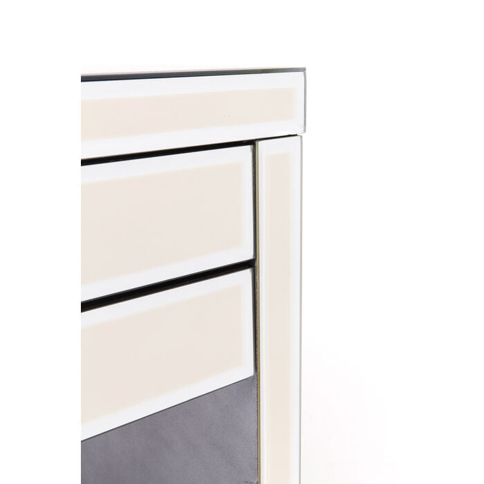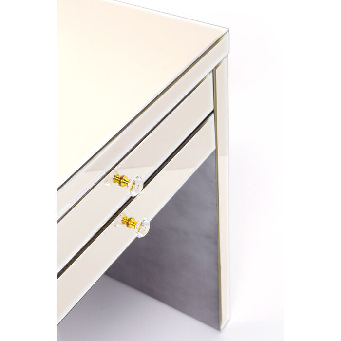 - Luxurious, mirrored desk with elegant glass handles and storage space in three drawers.