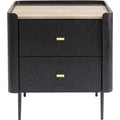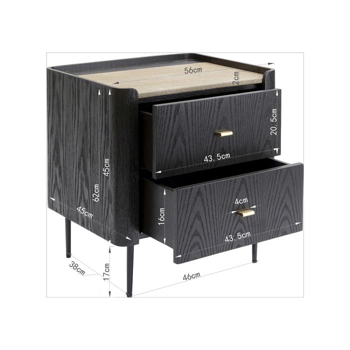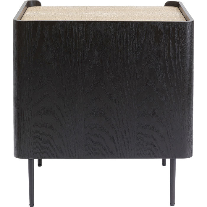- An elegant small dresser with two spacious drawers, manufactured in the tradition of the finest Italian furniture design,The combination of black-brown solid oak and oak veneer with cream-coloured covers in a fine stingray skin look is full of character
