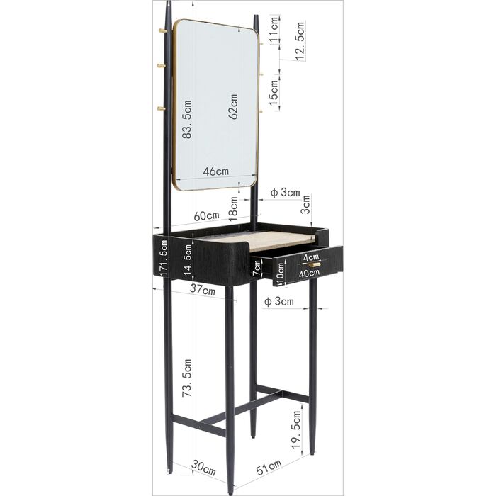 - For the beauty corner in the bedroom: the six hooks are ideal for your favourite jewellery, while make-up utensils disappear into the drawer
