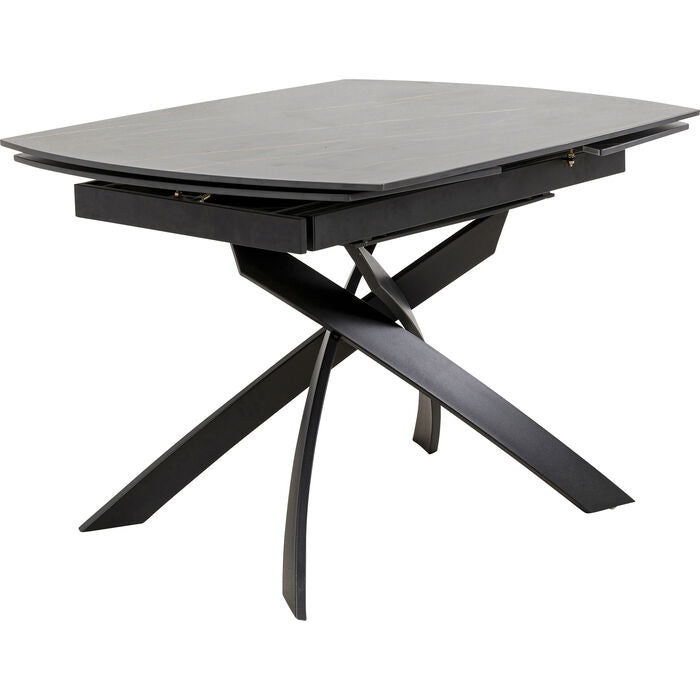If you are looking for a practical table that is also a real eye-catcher, you will be thrilled with the Twist extending table. The ceramic top can be easily extended from 120 - 180 cm thanks to a clever swivel mechanism. This means you can invite the whole family to celebrations. Underneath the high-quality ceramic layer is a glass top made of safety glass, which guarantees special stability. The black frame is absolutely unique thanks to its curved shape. The table is an essential centre around which life takes place in your home. If this focal point then also looks unique, modern and stylish, there are no more wishes left unfulfilled.