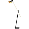 Material: Frame: Steel powder-coated, Base: Steel powder-coated, Bar: Steel brass-plated, Shade / outer surface: Aluminum powder-coated, Shade / inner surface: Aluminum copper-plated, 200 cm Lenght of wire, 17,60 x 16,20 x 16,20 cm Shade, 26 cm Ø Stand/base, Hand-crafted, Adjustable in height, Foot-operated switch, Wire Textile-covered Black, Delivery Knocked-down