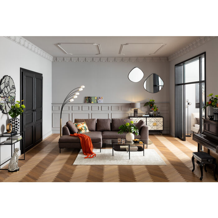 Material: Frame: Steel brass-plated, Base: Marble, Bar: Steel powder-coated, Shade: Glass Clear, 200 cm Lenght of wire, 7,80 x 13,70 x 13,70 cm Shade, 3 x 35 x 35 cm Stand/base, Hand-crafted, Adjustable, Foot-operated switch, Wire Textile-covered Black, Delivery Knocked-down