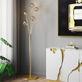 - Large, luxurious floor lamp with five arms in a brass look and glass spheres as lampshades
