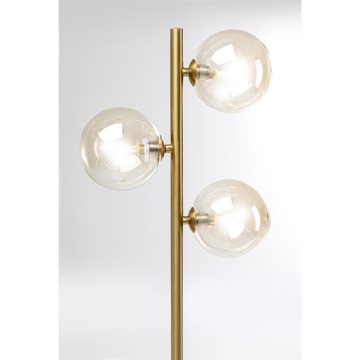 - Exclusive materials: lampshades made of lightly tinted glass as well as a base and frame made of steel coated with brass