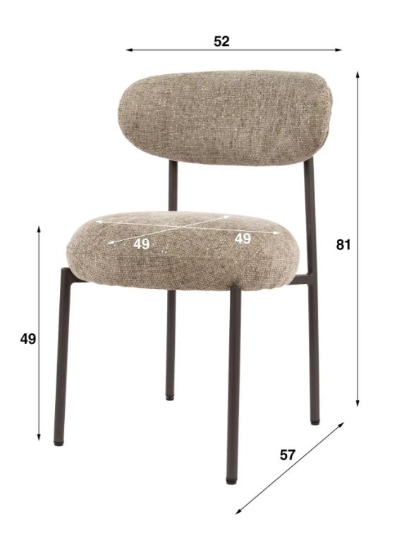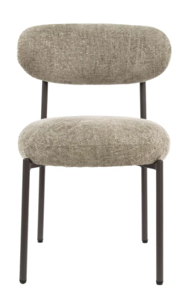 Retro style with industrial tones, the Hayden dining chair blends comfort with contemporary edge. Featuring a rounded seat and backrest upholstered in durable renegade fabric, this chair is designed for everyday use. Pocket spring cushioning adds superior comfort, while slim black metal legs give it a clean, modern finish. Part of the Round chair series.