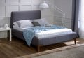 A super smart, contemporary bedstead with a sublime slate grey fabric.