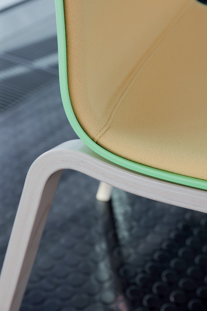 Chair in polypropylene, 4 legs wood structure.