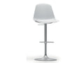 Height adjustable stool (H. 58,5/85 cm), shell in polypropylene, footrest and chromed structure, brushed chromed stainless steel base.