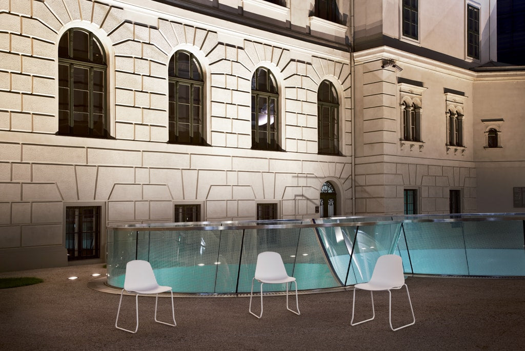 Chair in polypropylene, black or white Painted or chromed cantilever structure.