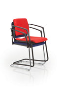 Group Seating, medium backrest, with fixed armrests, chromed, painted white or black coated structure, upholstered seat and back, stackable.