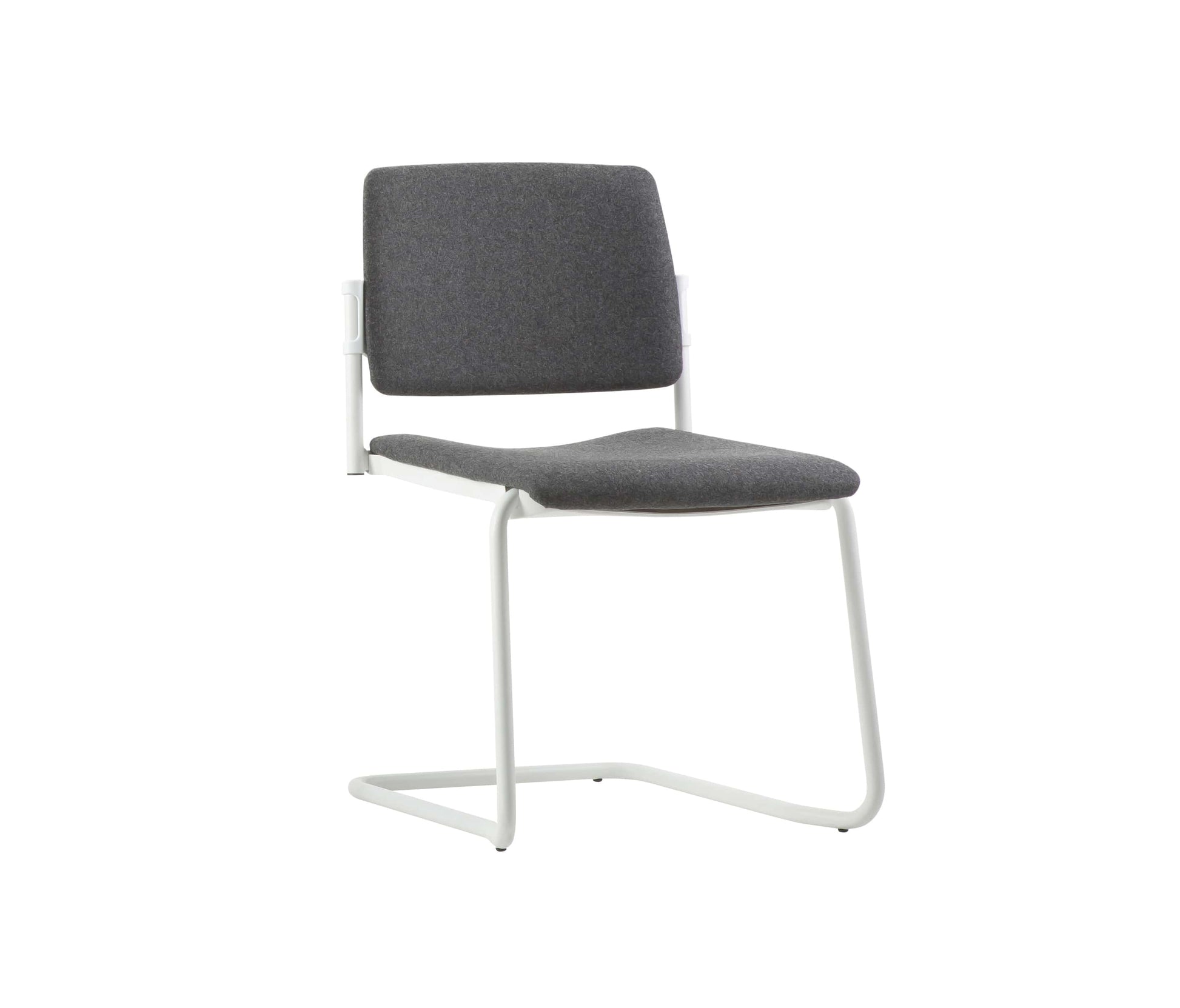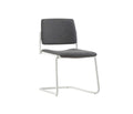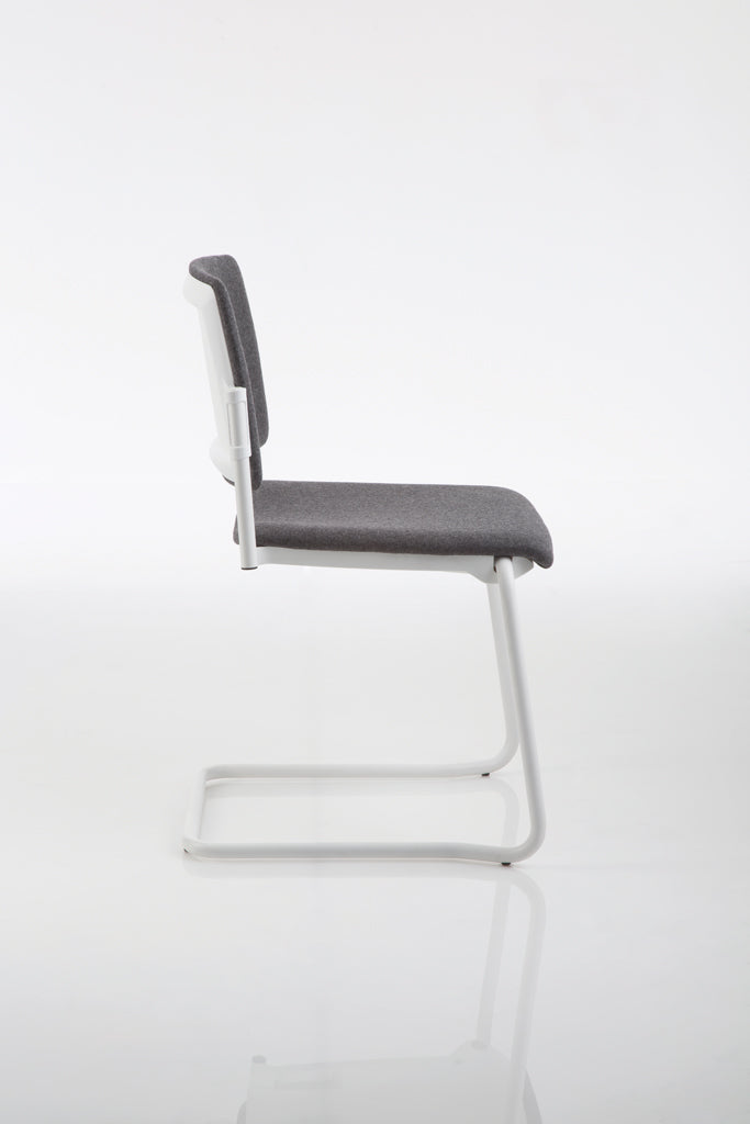 Group Seating, medium backrest, without armrests, chromed, painted white or black coated structure, upholstered seat and back, stackable.
