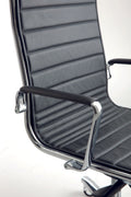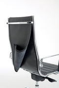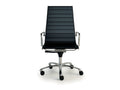 Executive chair with high backrest, chromed-aluminium armrests, decentrated multiblock mechanism, polished aluminium base.